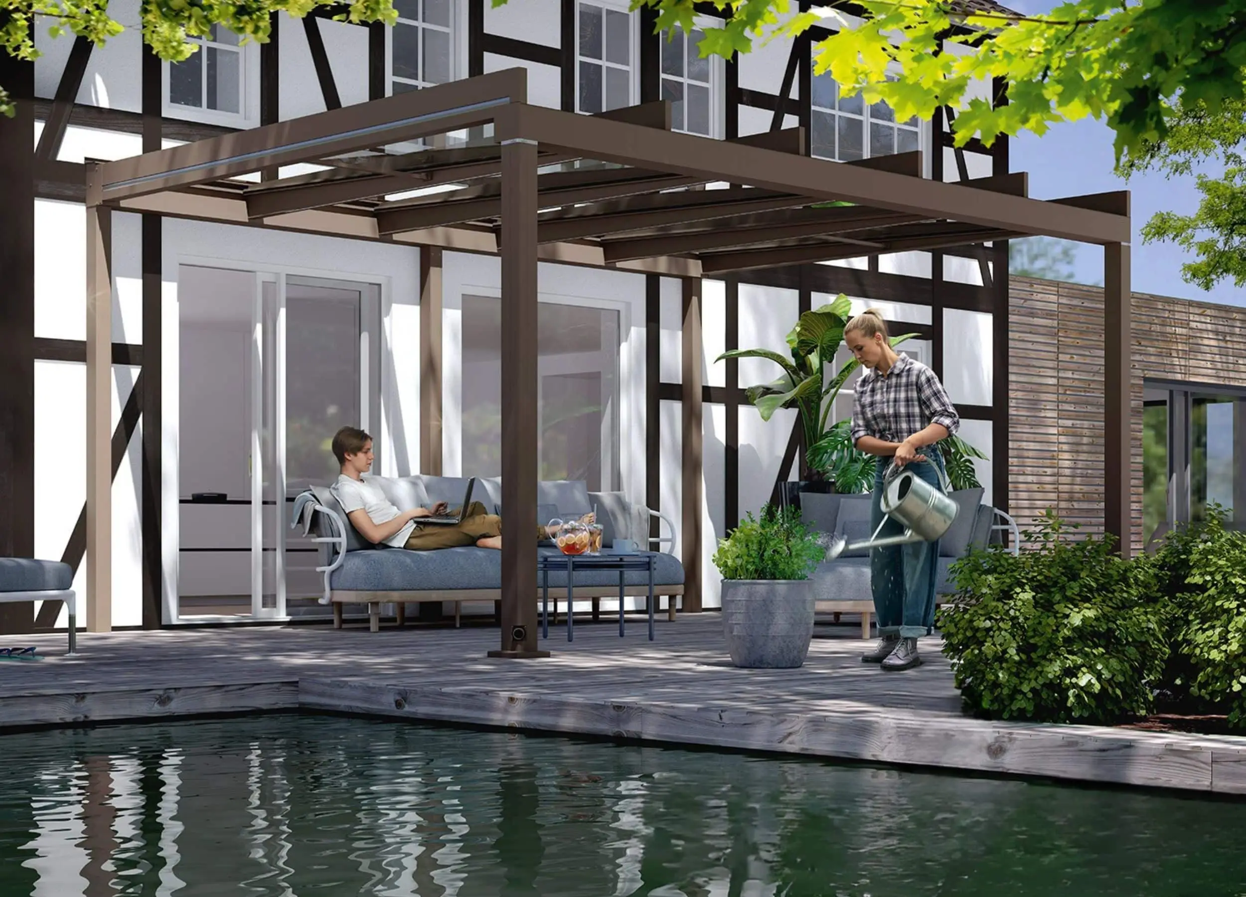 The Weinor Terrazza Pure veranda is more than just a patio roof — it’s a modern design statement. With its sleek cubic frame and clever integrated drainage, it protects you from rain while keeping your outdoor space bright and open. Whether you’re relaxing after work or entertaining friends, the Terrazza Pure veranda transforms any patio into a stylish outdoor living room.